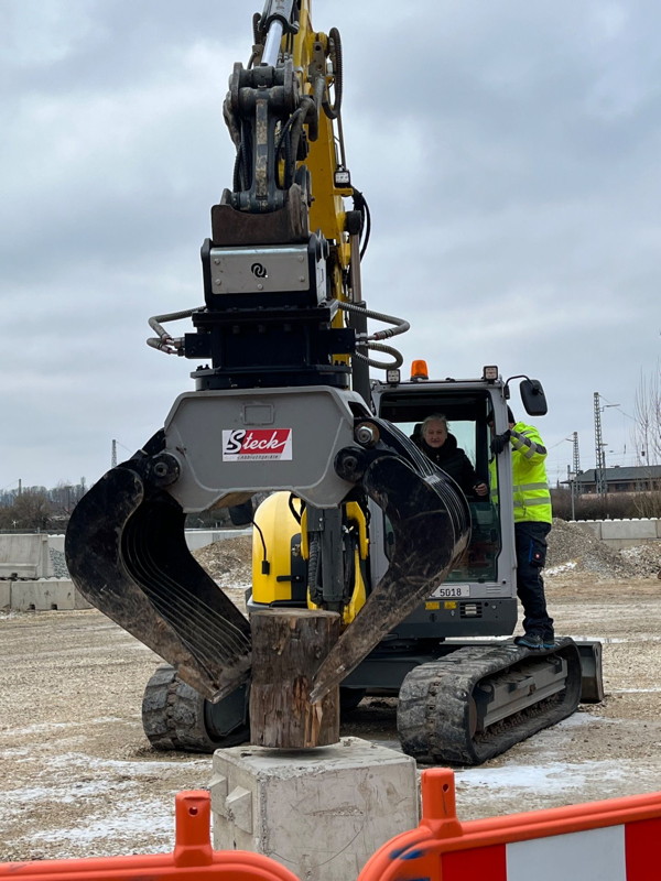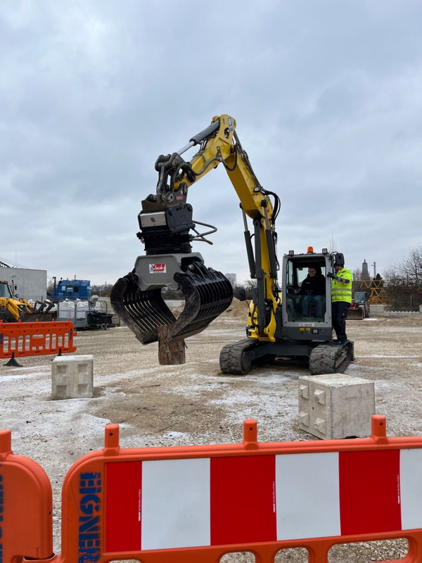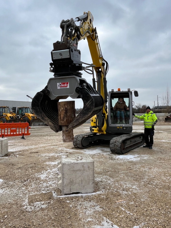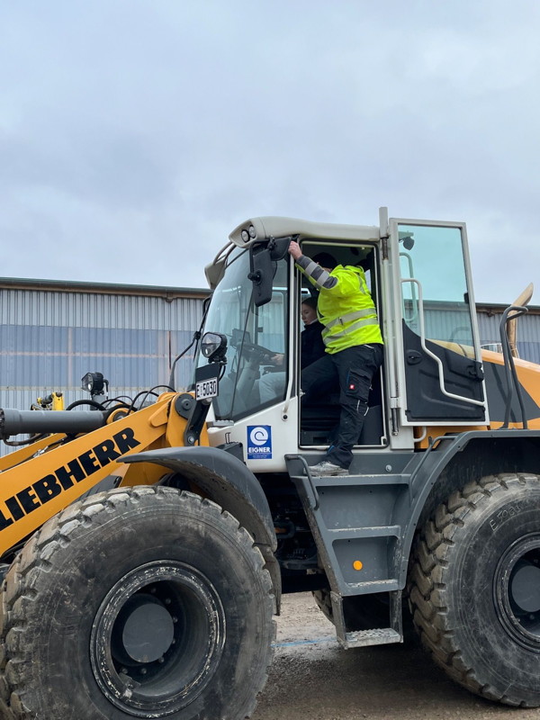 Das Beste des Tages war jedoch das Fahren mit Bagger und Radlader (wer den Unterschied nicht kennt, fragt seine kleinen Geschwister!). Mit der Baggerschaufel musste ein Holzstock von einem Betonquader auf den anderen umgesetzt werden, was von allen bravourös und mit viel Feingefühl gemeistert wurde. Anschließend durften die Schülerinnen und Schüler noch einige Runden mit dem Radlader um das Gelände drehen, was unter der Aufsicht des sehr netten Betreuers ebenfalls gut gelang. Trotz der Kälte verging die Zeit wie im Flug und auf die Frage „Wollt ihr nochmal?“ sagte niemand „Nein“. Auch an dieser Station wurden die Teilnehmenden ausdrücklich gelobt.