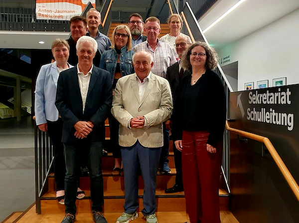 (vlnr): hinten: Christian Weiland, Thomas Walter, Sabine Reicherzer; Mitte: Manfred Reichel, Konrektorin Sandra Lüftl, Max Engelhardt, Dr. Heinz Sommerer, vorne: BeRin Sabine Gehring, 2. Vorstand Georg Jaumann, 1. Vorstand Gottfried Hänsel, Alexandra Waschner-Probst